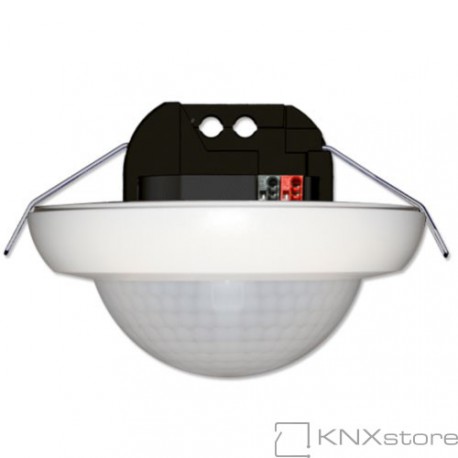 KNX detektor přítomnosti s integrovaným sběrnicovým konektorem.